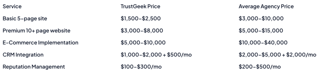 TrustGeek's mission is providing the best tailored solutions to our clients. We offer the best service for the lowest price, and we stand by our promise.